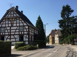 We stonden op met prachtig weer. De tent hadden we mooi droog in kunnen pakken. Via Soppe-le-Bas en Guevenatten komen we weer op de route. We volgden het fietspad Piste Cyclable de la Largue. Erg mooi en het weer zit geweldig mee. We zien diverse vakwerkhuizen.