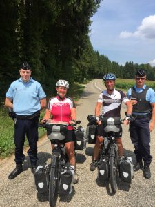 Na Courtavon verlieten we Frankrijk en reden zo het Zwitserse canton Jura in. De Franse Gendarmerie wilde graag op de foto.