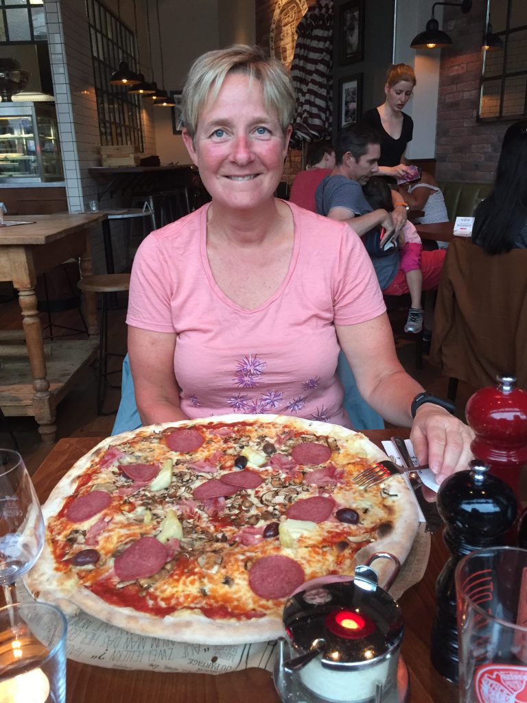 Op het station in Biel hebben we een hotel geboekt. Het bleef maar regenen en onweren. Na een heerlijke douche in het hotel zijn we de stad ingegaan om een hapje te eten. We vonden het lokaal Osteria. Erg gezellig en heerlijk gegeten.