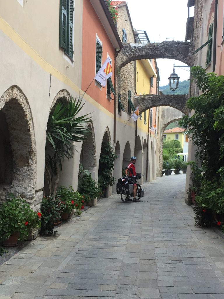 Daarna kwamen we door Zuccarello. Dit is een mooi oud typisch Ligurische, langgerekt dorpje met fraaie arcaden en doorgangen.