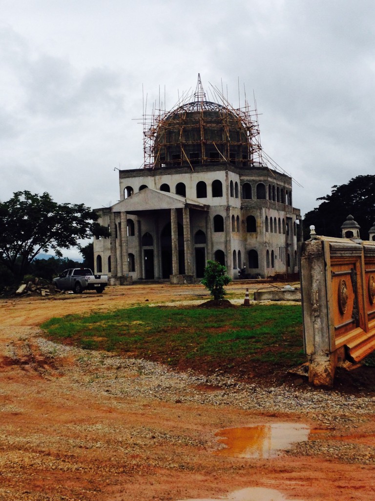 Voor ons werd ook een ananas en mango schoon gemaakt en in parten gesneden, heerlijk. We fietsten weer langs een enorme Buddha bij de tempel “Wat Muen Mettakhunaram”. Erg mooi.
