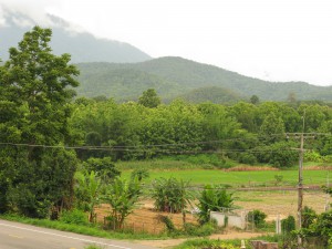 In plaats van rijstvelden was de omgeving vandaag maisvelden en uitgestrekte bossen met bamboe en bananenbomen. Er waren wel weinig stalletjes en dorpjes.