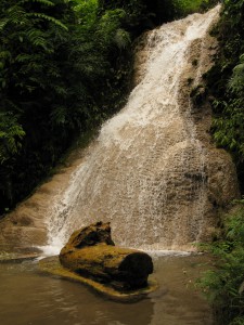 De afdaling was heerlijk. Halverwege kwamen we langs een waterval.