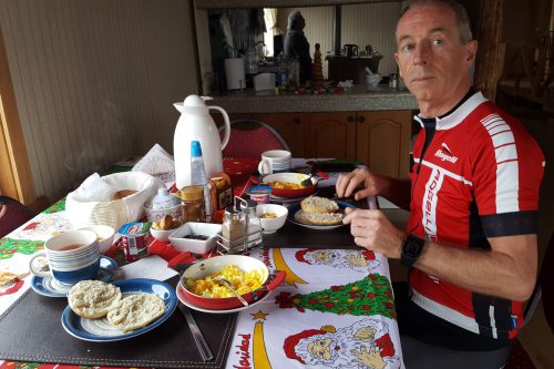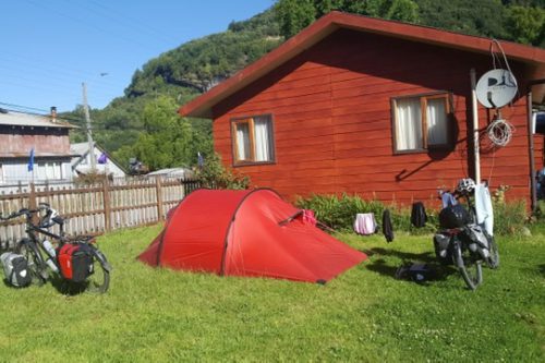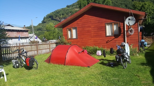 Wat een uitgebreid ontbijt, heerlijk! De mist trok gelukkig snel op en on 09.00 scheen de zon. Dat is ook Patagonië, zeer snel wisselende weersomstandigheden. Deze dag was in ieder geval met strak blauwe lucht en een zeer felle zon. De route naar La Junta was weer met prachtige uitzichten en geheel geasfalteerd! Om 16.00 uur hadden we een mooie kleine camping gevonden midden in La Junta. Op dat moment stond er 1 tentje. Nadat we de tent hadden opgezet hebben we het dorp even bekeken. Bij terugkomst was de camping gevuld met 10 tenten. Allemaal fietsers uit diverse landen, jong en oud. Erg gezellig. Later hebben we samen met het eerder ontmoete stel uit Zuid-Afrika lekker gegeten in een restaurant. Weer een top dag!