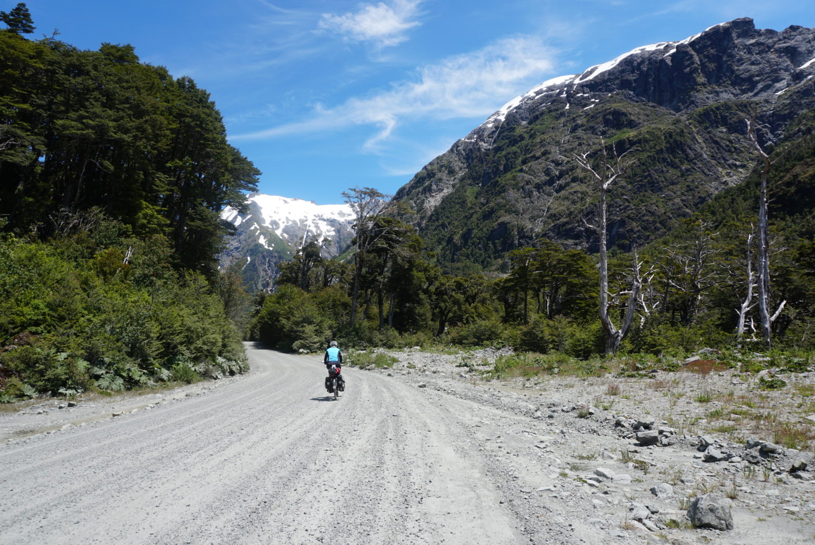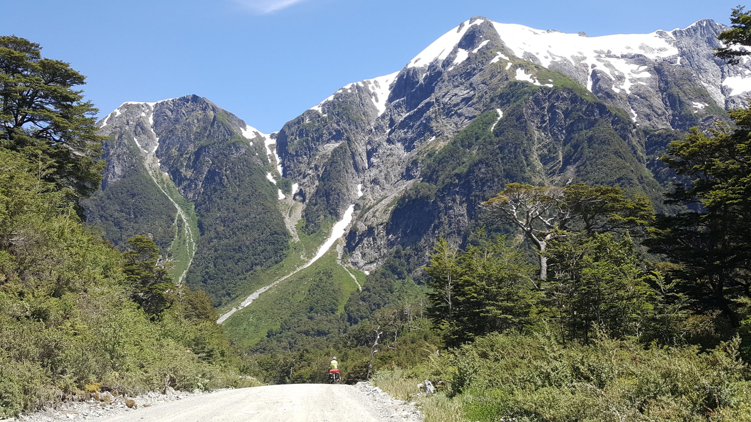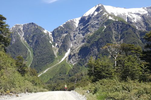 Het wordt vandaag een zeer pittige tocht. We moeten een pas (600 m) over en deze weg is onverhard! Dus we stonden vroeg en vertrokken om 08.45 uur. De klim begon na 20 km en was 5 km lang. Het was behoorlijk afzien. De zon scheen volop en de weg was zeeeer slecht! Het waren haarspeldbochten met kuilen en losse stenen. Dus ook regelmatig afstappen en duwen ?. We hebben er bijna 3 uur overgedaan. Na de top was de afdaling ook onverhard. Na 35 km kregen we weer asfalt. Heerlijk! Na ruim 60 km kwamen we aan bij de camping Refugio Rio Cisnes. Een prachtige camping gerund door een jong Chileens stel. Zij nodigden ons gelijk uit voor een oudejaarsavond met eten en drinken.