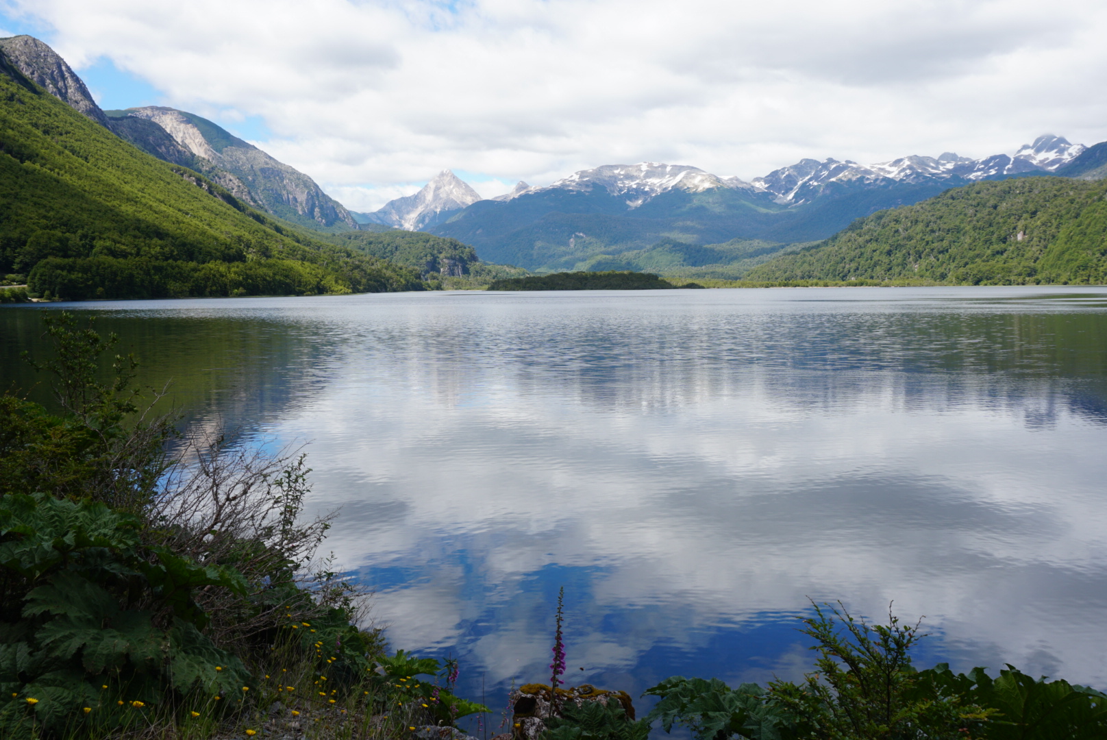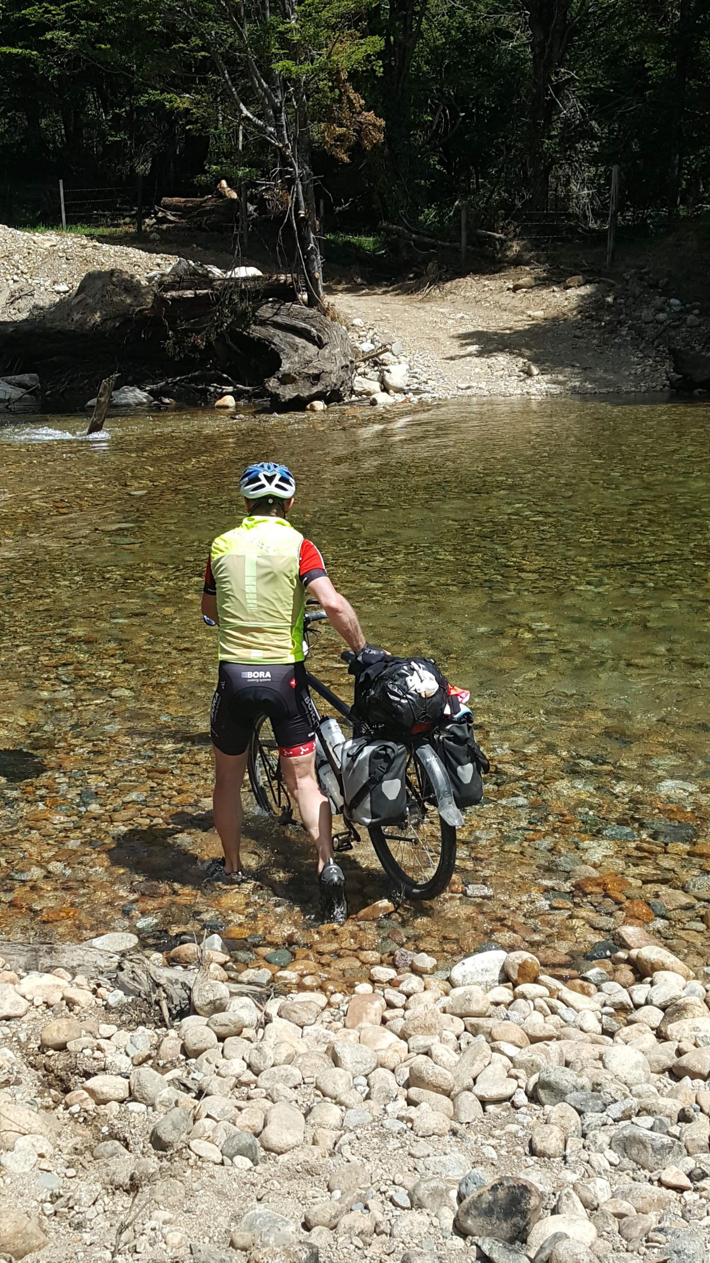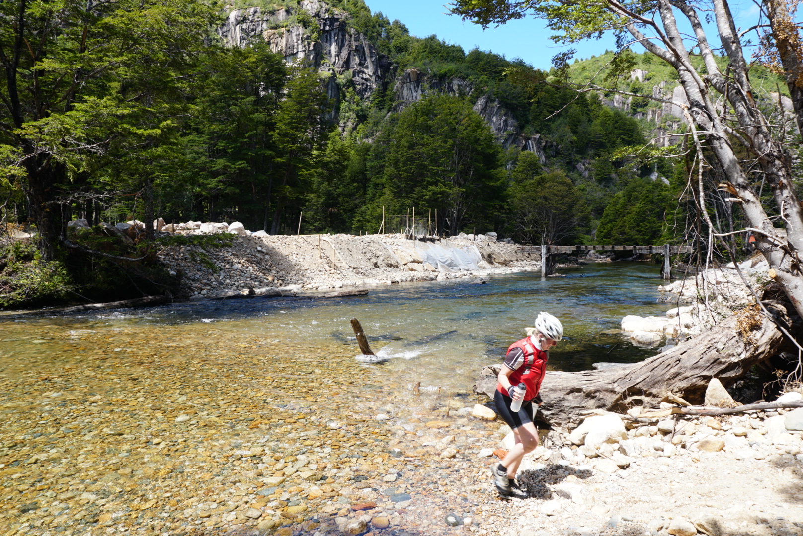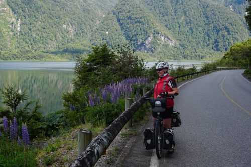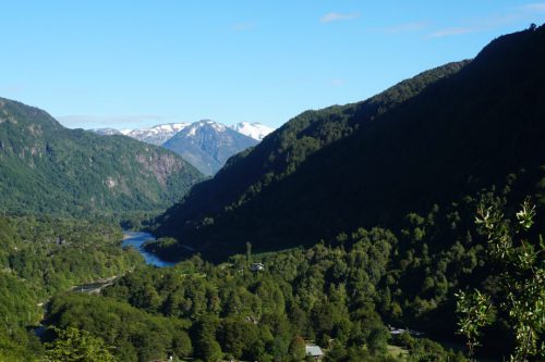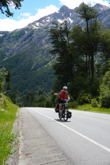 Om 08.45 zaten we op de fiets. Na 2 km begon weer de eerste klim. Het was een prachtige dag. Het is dus Patagonisch vlak, dat wil zeggen dat het golvend op en neer gaat met stijgingen van soms 12% ?. Na 40 km kwamen we bij een splitsing van de route. We konden linksaf met een behoorlijke klim maar geasfalteerd of 21 km redelijk vlak over ripio. We kozen de 2e optie. Een geweldig mooie route zonder verkeer en prachtige natuur. We fietsten door de vallei en konden overal de bloemen ruiken. Eén klein obstakel kwam op deze route, een brug was niet meer aanwezig?. Dus dan maar door de rivier. Dit hadden we niet willen missen! Weer een nieuwe ervaring erbij. Na 66 km hebben we in Villa Mañihuales een mooie camping gevonden, Camping Borderio.’ In dit stadje hebben we boodschappen gedaan en ‘s avond hebben we een lekker maaltje gekookt.