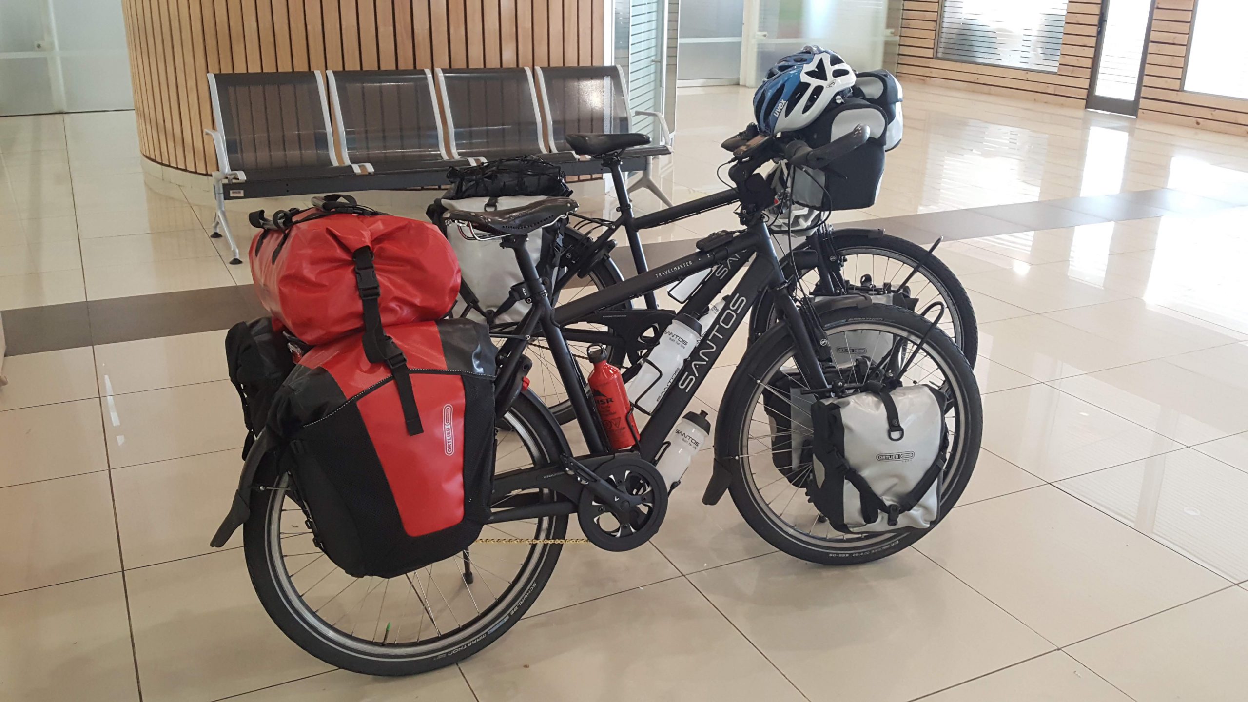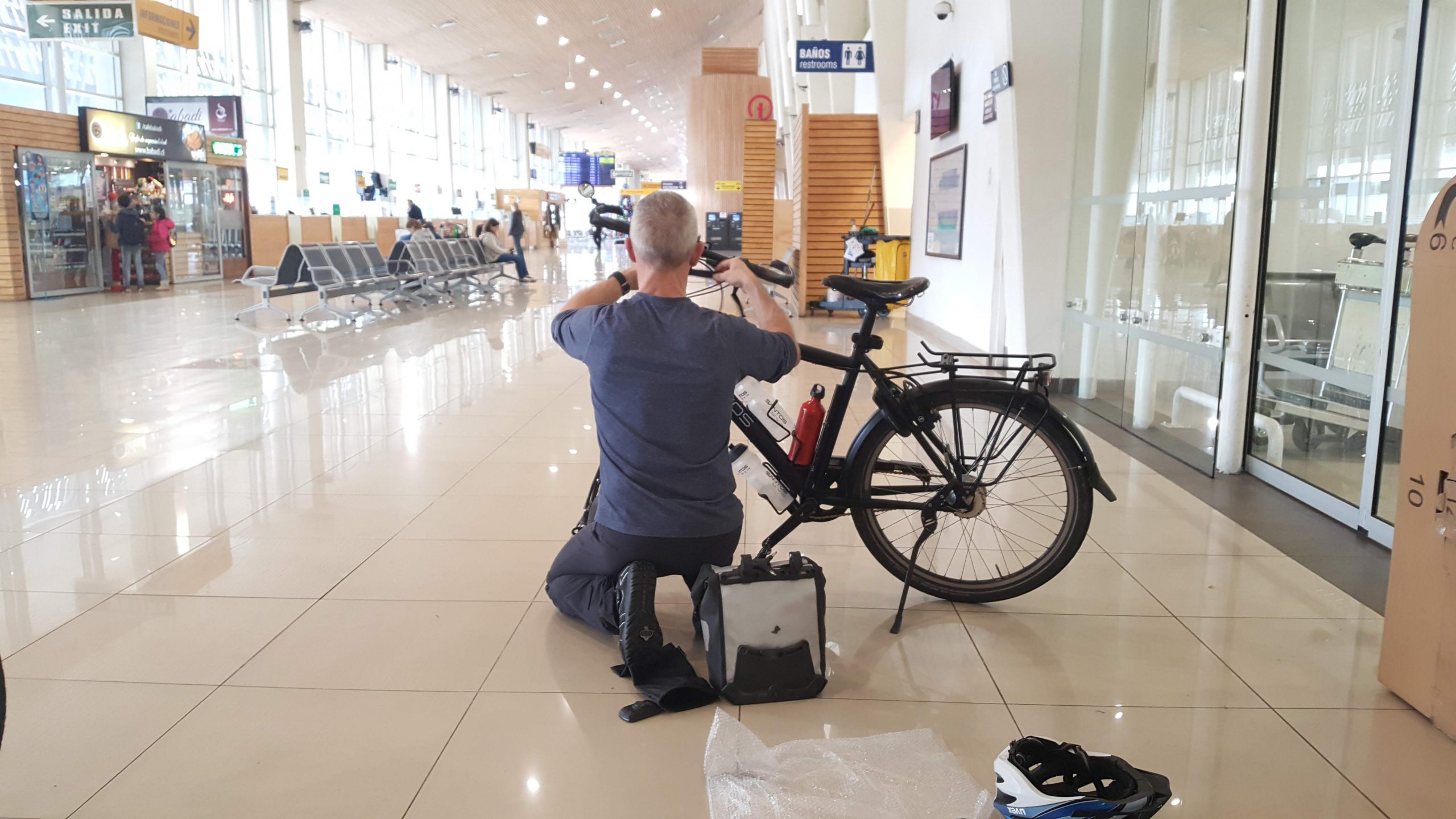 Mooi op tijd komen we aan op het vliegveld van Puerto Montt, El Tepual. Hier hebben we eerst de fietsen weer geprepareerd voor de fietstocht naar ons hotel in Puerto Montt. Gelukkig was alles oké met de fietsen!