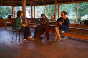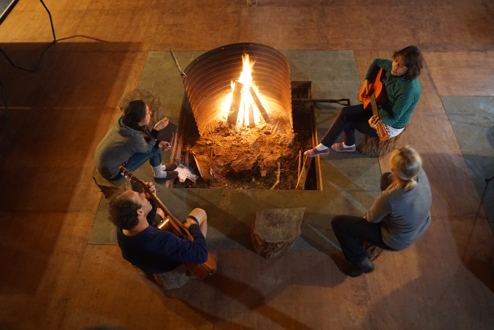 Na het eten kwamen de gitaren en ukeleles voor de dag en hebben we genoten van de muziek. Rond 22.00 uur werd een vuur gemaakt in het midden van de ruimte. Het was super gezellig.