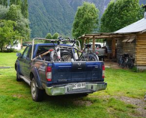Vandaag zijn we met de pickup naar Coyhaique gebracht omdat mijn voorrem het niet meer deed. De afstand was 40 km, maar oh wat was ik blij dat Sandra, de eigenaresse, ons bracht! Het verkeer was enorm druk. Op verschillende plaatsen werd flink aan de weg gewerkt én het was super steil met stukken ripio!