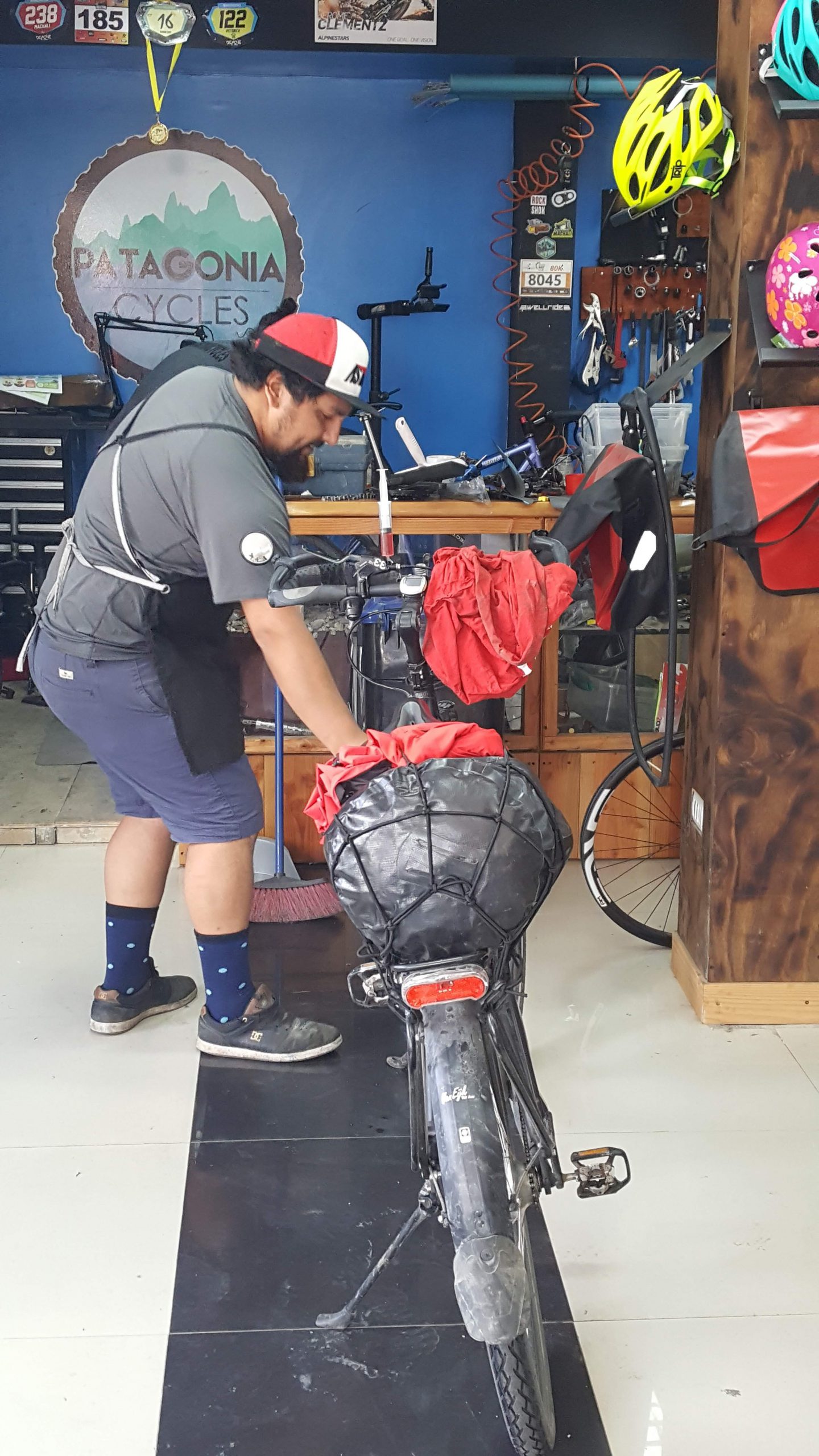 Miquel van Patagonia Cycle heeft mijn voorrem weer gemaakt. Echt top. We hebben intussen een Cabañas genomen voor twee/drie nachten omdat het hier gezellig is.