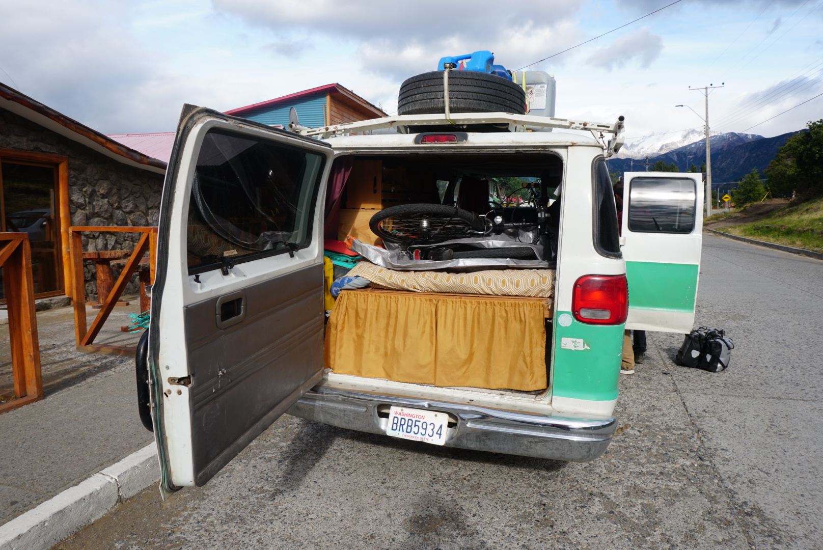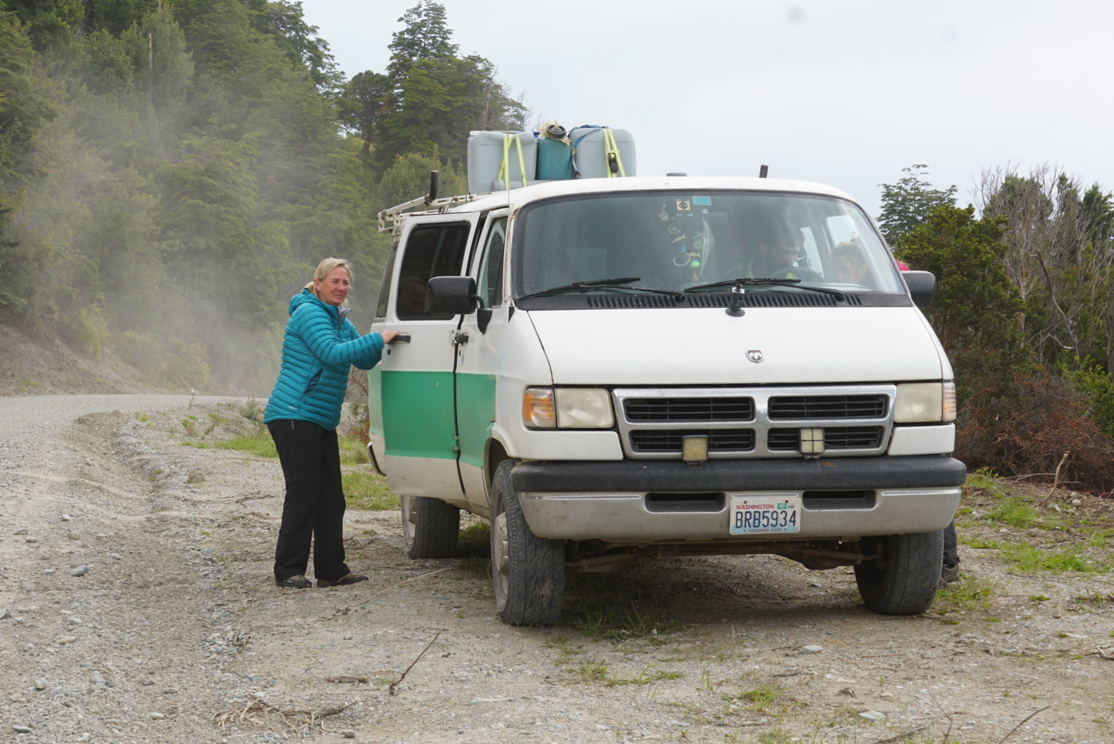 Wij voorzagen het probleem en kwamen gisteravond Ann-Sofie en Niek, een stel uit België tegen en hebben hen gevraagd of ze ons mee konden nemen. Ze reizen met een Dodge RAM Van door Patagonië. Ze reizen al anderhalf over de wereld.