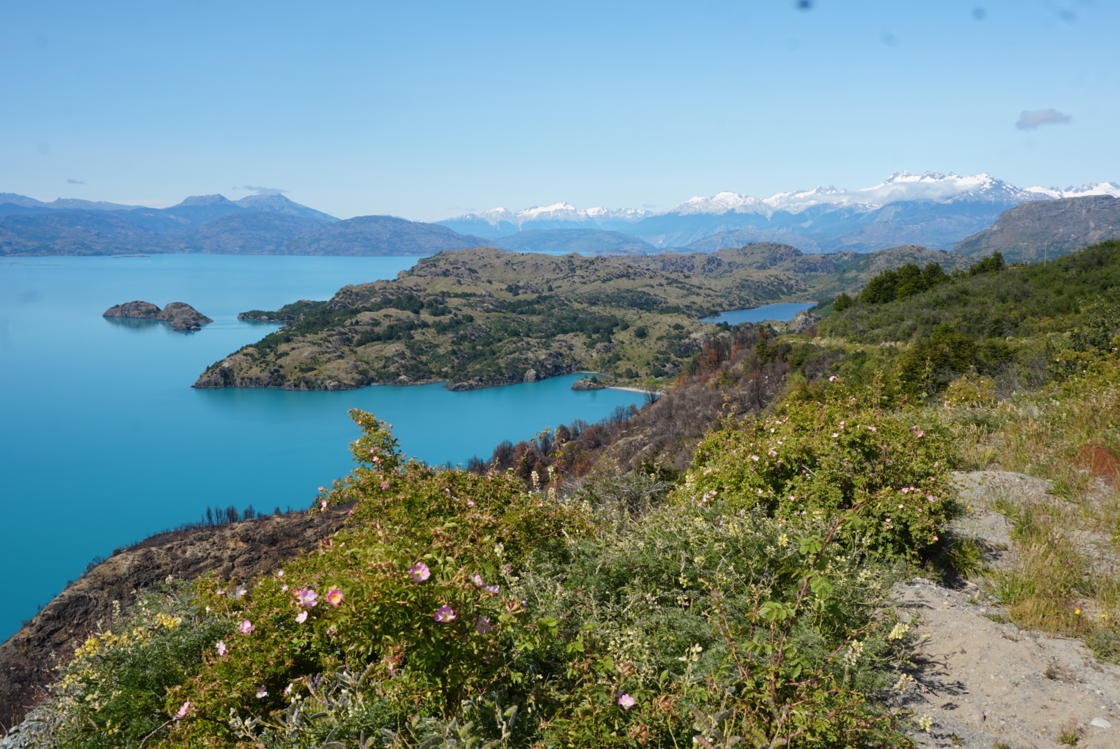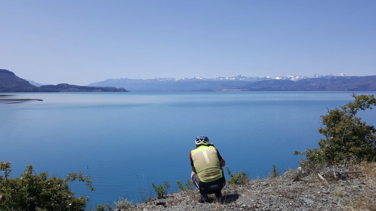 Om 09.00 uur vertrokken we uit Puerto Rio Tranquile. Het was vandaag een super warme dag met wel 36 graden. De tocht was geweldig, alleen werden we gek van de steekvliegen!! De hele dag fietsten we langs het Lago General Carrera en de ripio was goed te doen. Er was ook geen wind, wat het aangenaam maakte. We zitten nu op Pared Sur Camp Patagonia een camping die ook outdooractiviteiten heeft en Cabañas en ook dorms. Dit zijn witte tenten die er als een iglo uitzien. Met alles erop en eraan, maar dan moet je wel 90.000 pesos ($91) neertellen. We slapen vannacht toch maar weer in ons tentje ?We hebben op de camping een geweldig uitzicht op het meer. De wifi is hier via satelliet en is niet vooruit te branden.
