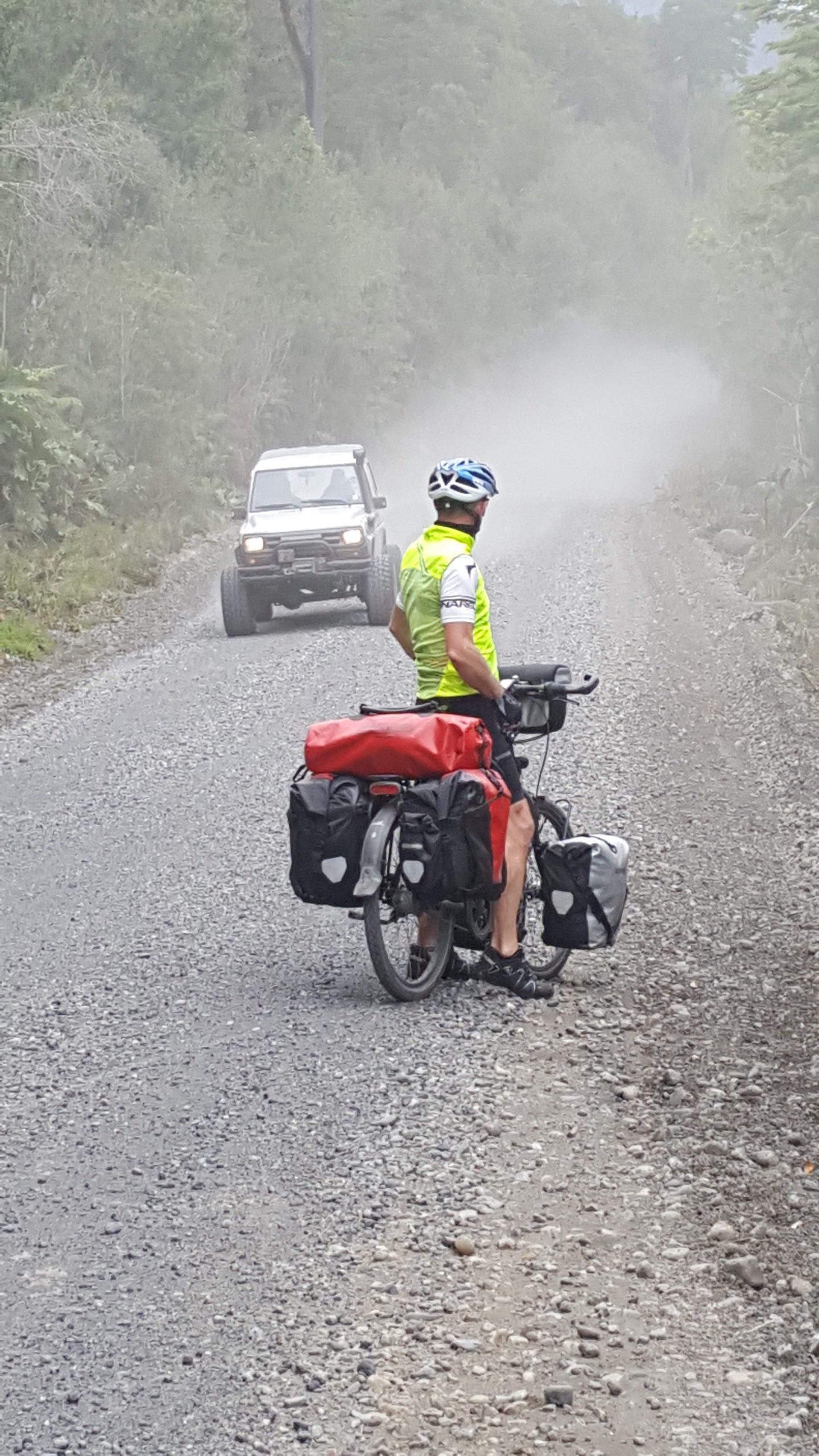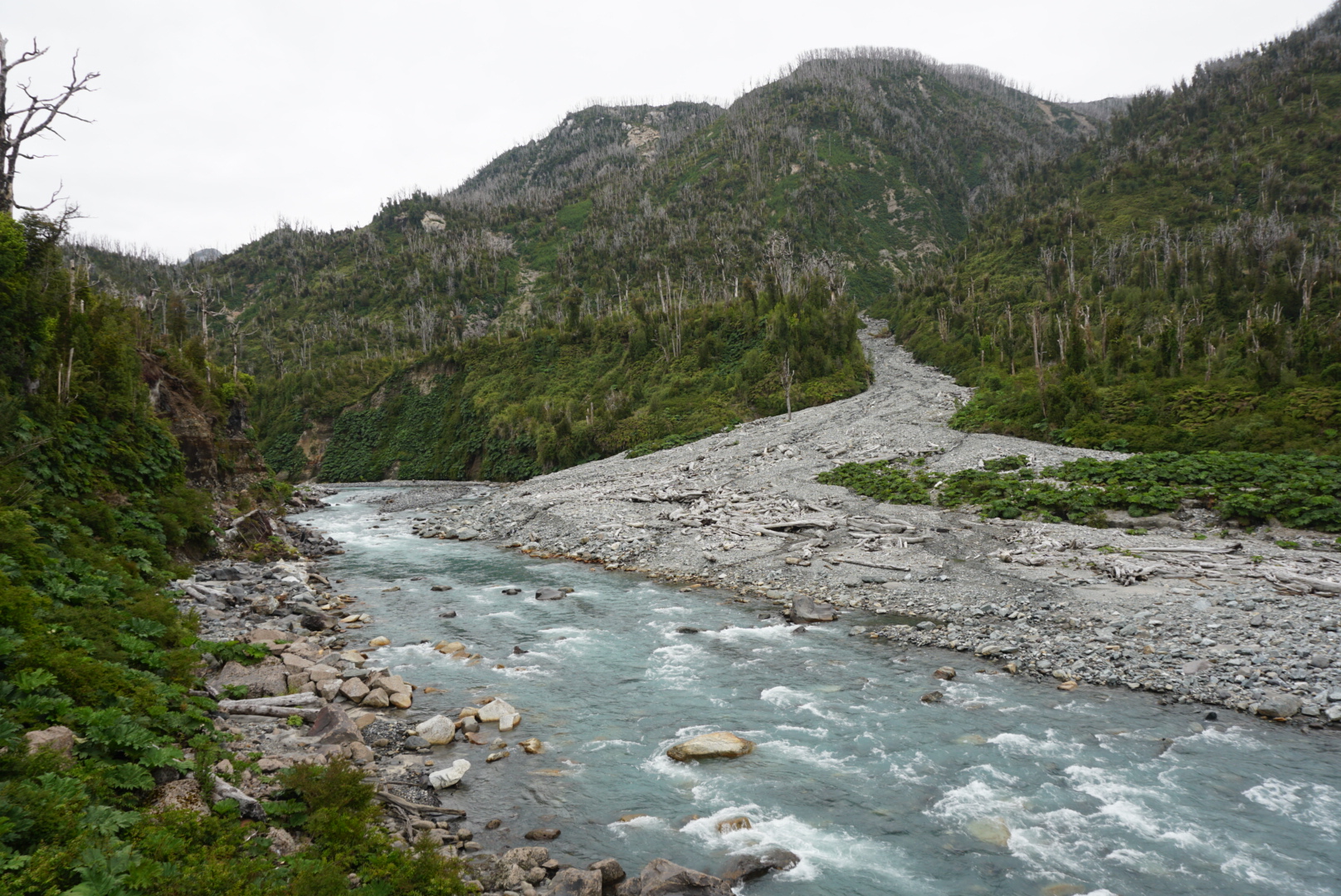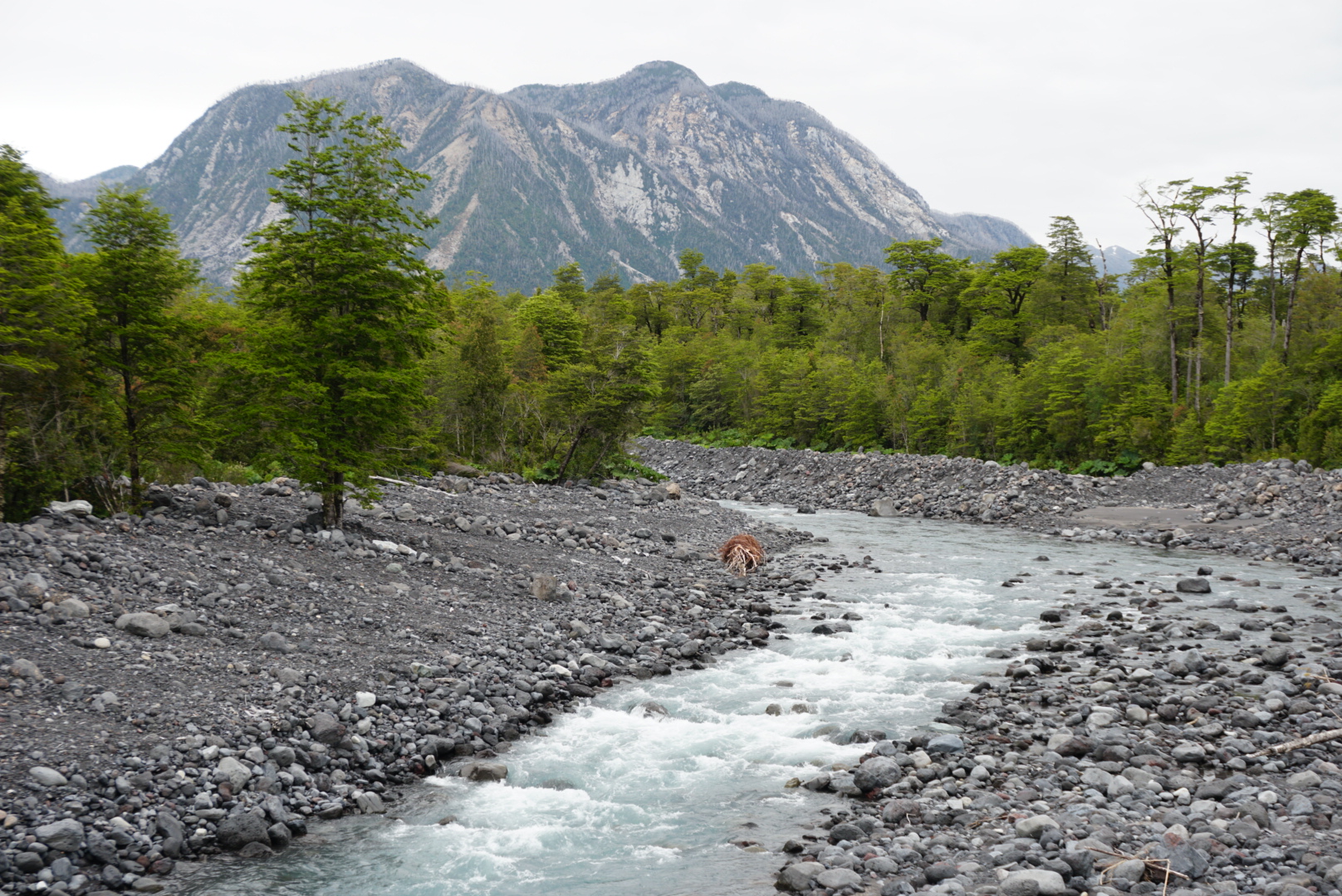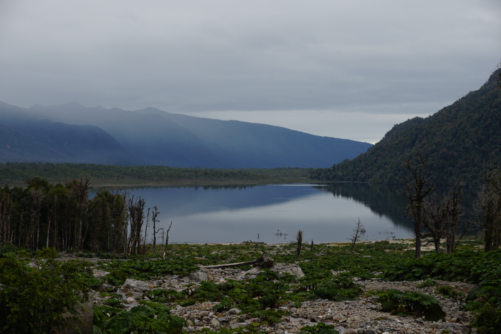 We hebben weer heerlijk geslapen. Vandaag was er geen stromend water meer bij het toiletgebouw en hebben we water gehaald bij de rivier. Om 10.00 zaten we op de fiets. De onverharde weg (ripio) werd iets beter te fietsen. Dit bleef zo de eerste 20 km. De auto’s veroorzaken erg veel stof maar daar hebben wij op ingespeeld. We zien eerst het door steile berghellingen omlijste Lago Negro en later Lago Blanco. Het is hier dicht bebost. We fietsten door het vulkanisch gebergte van Chaitén. Deze vulkaan is nog in 2008 en 2009 actief geweest. In het bos zijn daarvan nog de sporen goed te zien. Het met 4000 inwoners tellende pioniersnederzetting Chaitén werd bedolven onder as en lava en is nu redelijk opnieuw opgebouwd. Hier vonden we een hostel net voordat het behoorlijk gaat regenen en waaien. We blijven hier 2 dagen. Even bijkomen en relaxen. De kachel brandt al lekker in huis!