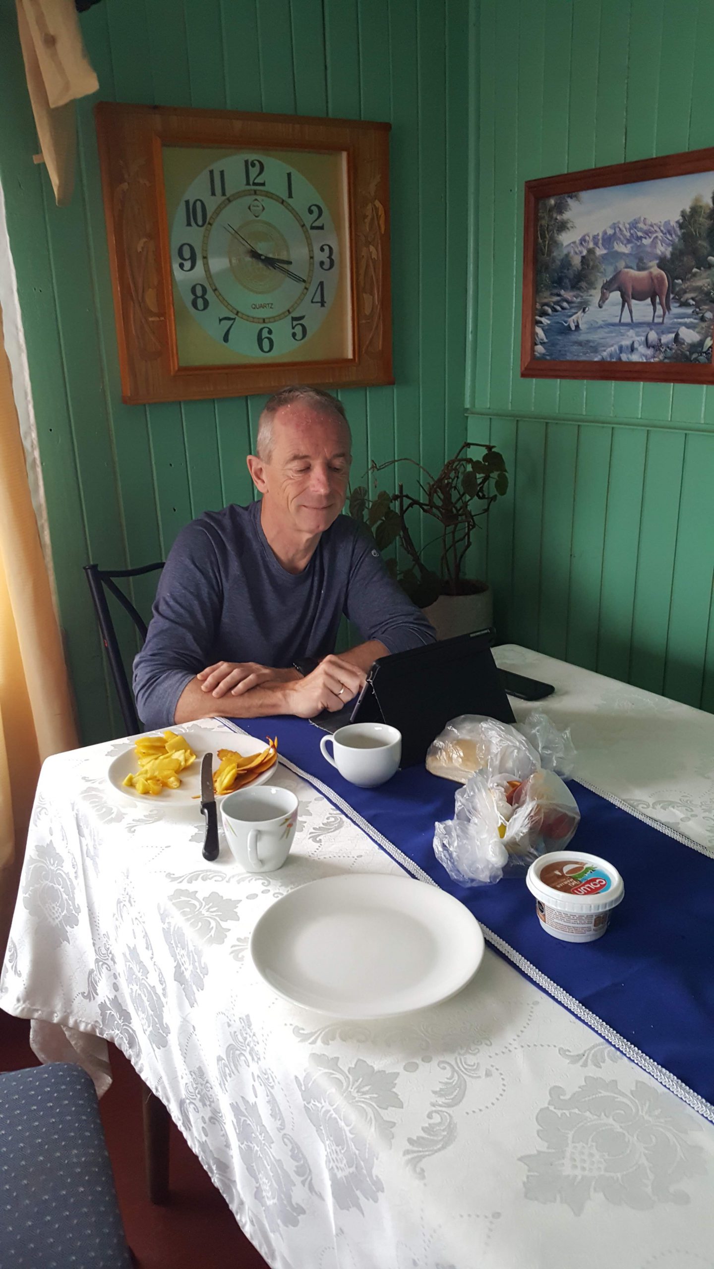 Vanochtend tussen de buien door gewandeld door Chaitén. We hebben een koffietentje gevonden, geld gepind en boodschappen gehaald. In de middag heb ik de website bijgewerkt en Henny is begonnen aan een boek.