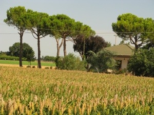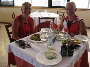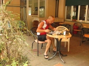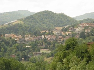 Halverwege deze etappe maakt gelukkig het vlakke landschap plaats voor de mooie groene Apennijnen. Via het dal van Sávio klimmen we geleidelijk omhoog. Na ruim 1.800 km zien we voor het eerst een reetje in het veld. Langzaam gaan de heuvels over in echte bergen. We zitten nog steeds in de provincie Emilia-Romagna. In Cella hebben we bij een trattoria heerlijk Italiaans geluncht tussen de plaatselijke bevolking. Naar ruim 98 km zoeken we een hotel in San Piero in Bagno. Het wordt hotel “Bologna” en we worden vriendelijk ontvangen. De kamer ziet er goed uit en is ook wifi! Onder het genot van een Spritz Aperol en een biertje werken we samen de site weer bij.